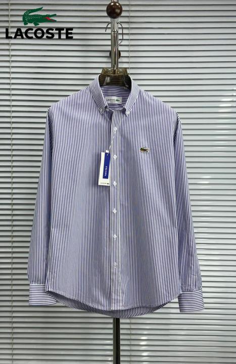 Home Shirts Lacost e Purple Premium Shirt 100% 2ply Cotton Peach Finish Fabric With custom Branded Button Tagging And Brand Poly Bag 4036